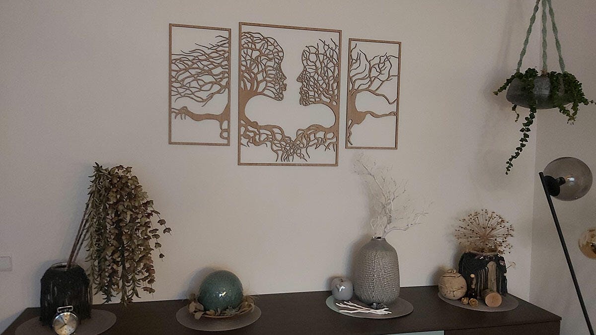 Wälder berühren – sie stehen für Leben, Verwurzelung und Stille. Das Wandbild „Waldliebe“ fängt genau dieses Gefühl ein: Eine feine Silhouette aus Bäumen, zart durchbrochen und mit einer ruhigen Tiefe, die sich direkt auf den Raum überträgt. Es ist mehr als nur Dekoration – es ist eine Liebeserklärung an die Natur.